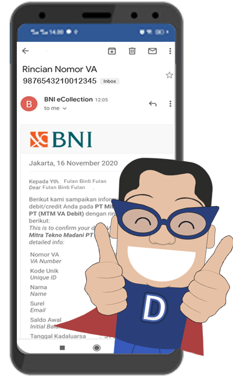Silahkan cek email masuk pada email kamu yang di daftarkan di pnmdigi nasabah, untuk mengetahui rincian nomor VA BNI kamu.